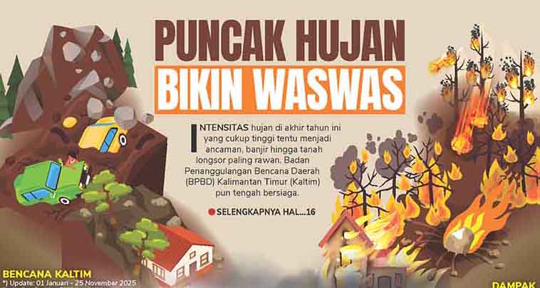 Berdasarkan data Pusdalops BPBD Kaltim ada 788 kejadian bencana sepanjang Januari hingga November 2025, dengan estimasi kerugian mencapai Rp 35 miliar. Banjir menjadi bencana paling dominan dengan 245 kejadian, disusul 147 kejadian tanah longsor dan 224 kebakaran permukiman.
