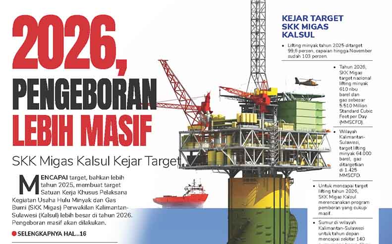 Mencapai target, bahkan lebih tahun 2025, membuat target Satuan Kerja Khusus Pelaksana Kegiatan Usaha Hulu Minyak dan Gas Bumi (SKK Migas) Perwakilan Kalimantan-Sulawesi (Kalsul) lebih besar di tahun 2026. Pengeboran masif akan dilakukan.