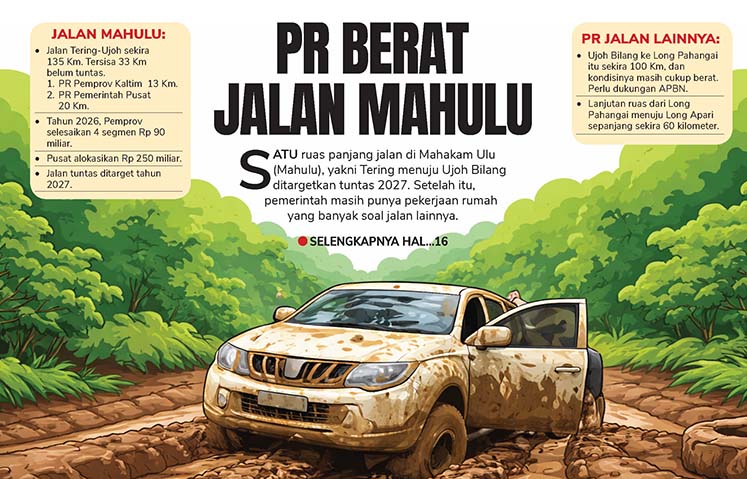 Satu ruas panjang jalan di Mahakam Ulu (Mahulu), yakni Tering menuju Ujoh Bilang ditargetkan tuntas 2027. Setelah itu, pemerintah masih punya pekerjaan rumah yang banyak soal jalan lainnya.